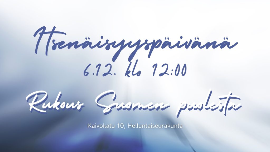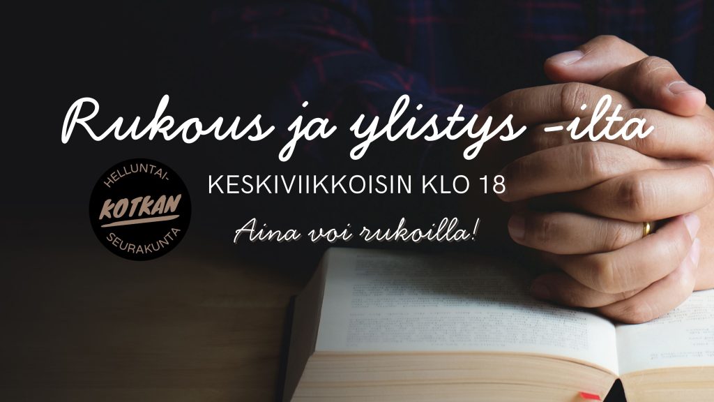 VIIKKO 49 Ti 2.12. klo 12 Päivärukouskokous Ke 3.12. klo 18 Rukous- ja ylistysilta | Jussi Heikkilä La 6.12. klo 12 Rukous Suomen puolesta Su 7.12. klo 11 Jumalanpalvelus, ehtoollinen, interpretation in English, перевод на Русский, pyhäkoulu | johtaa Jari-Pekka Rantala, Afrikan- terveiset Ruut ja Asko Kinnunen, puhe Kari Hänninen, musiikki Marika Ramu ym.
