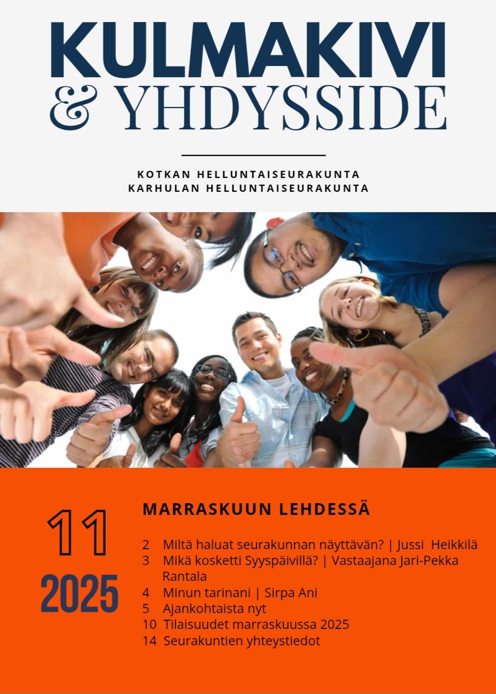 Marraskuun 2025 Kulmakivi-Yhdysside avautuu kuvaa klikkaamalla. Tervetuloa tilaisuuksiimme!